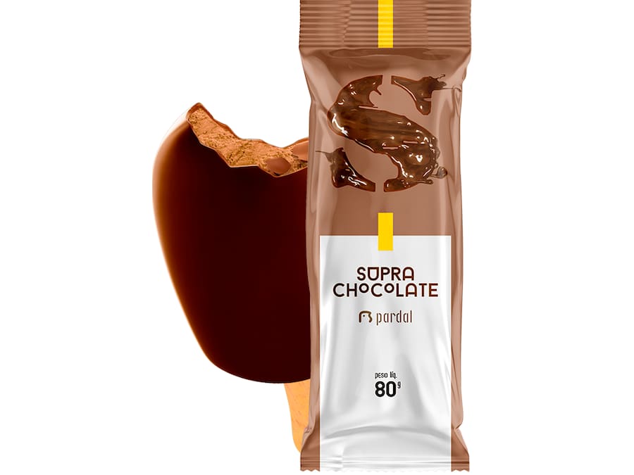 Picolé sabor chocolate com cobertura de chocolate.Contém leite. Contém glúten.